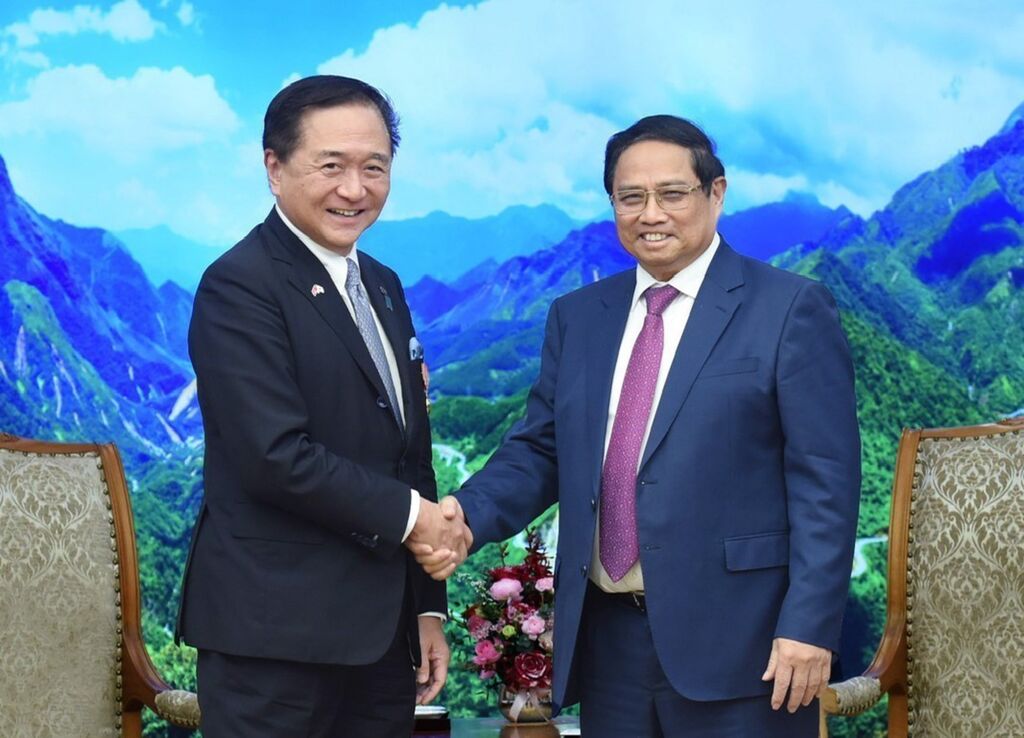 | Le Premier ministre vietnamien Pham Minh Chinh (droite) et le gouverneur de la préfecture japonaise de Kanagawa, Kuroiwa Yuji. |