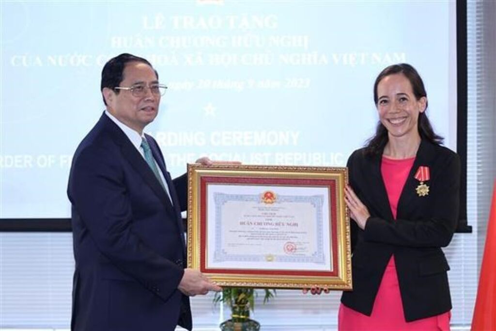 À cette occasion, le dirigeant vietnamien a décerné à Aurélia Nguyên l’Ordre de l'Amitié de l'État du Vietnam pour reconnaître son soutien important à la prévention du COVID-19, notamment l'accès aux précieuses ressources vaccinales pendant la période la plus difficile de la pandémie.