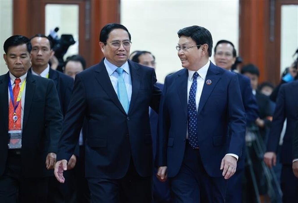 | Le Premier ministre vietnamien Pham Minh Chinh et le président de l'Assemblée nationale lao Saysomphone Phomvihane (droite). |