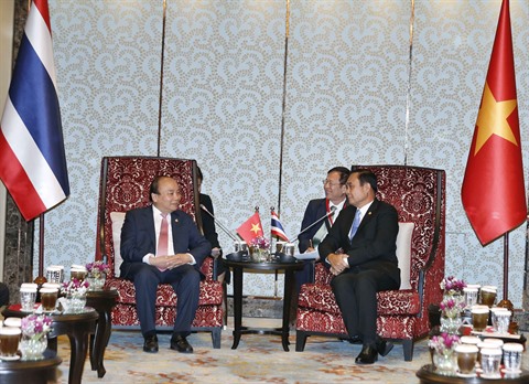 | Le PM Nguyên Xuân Phuc (gauche) rencontre son homologue thaïlandais Prayuth Chan-o-cha, le 15 juin à Bangkok en Thaïlande. |