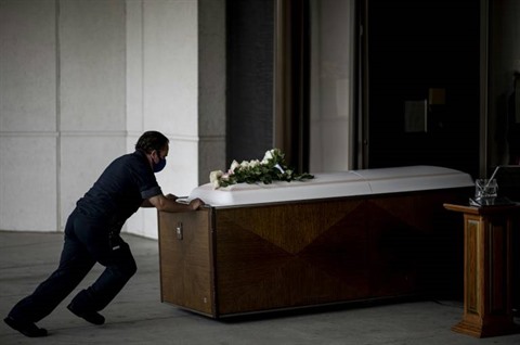 | Le cerceuil de Francia Nelly, native d'Équateur morte des complications du coronavirus, le 5 juin au cimetière St John dans le Queens à New York city. |
