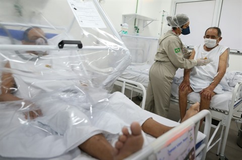 | Une soignante s'occupe d'un patient atteint par le coronavirus, le 8 juin à Manaus, au Brésil. |