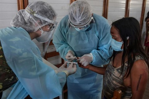 | Dans un dispensaire de campagne de l'armée brésilienne à Auari, en Amazonie, le 30 juin. |