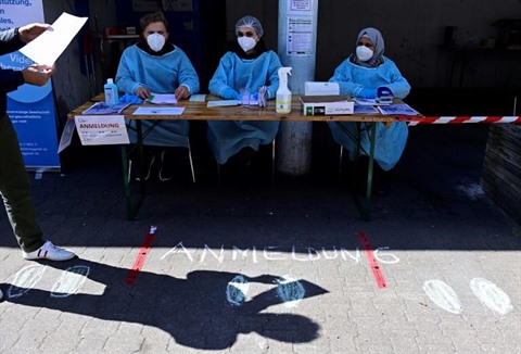 | Un patient vient se faire tester pour le COVID-19 avant la prière du vendredi, dans une mosquée à Berlin, le 23 avril |