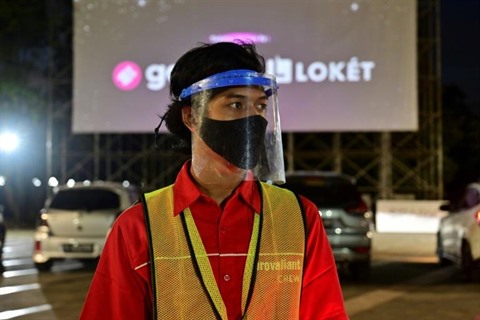 | Un employé de cinéma drive-in à Jakarta (Indonésie) le 8 septembre. |