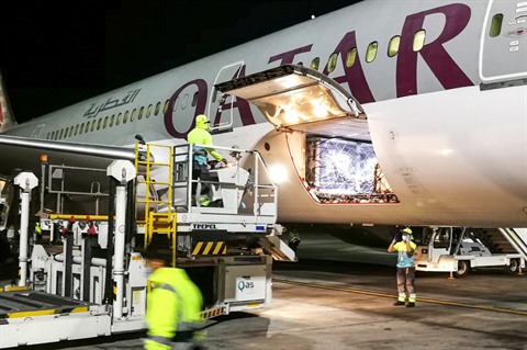 | Arrivée de doses du vaccin Pfizer-BioNTech contre le COVID-19 à l'aéroport de Doha, le 21 décembre au Qatar. |