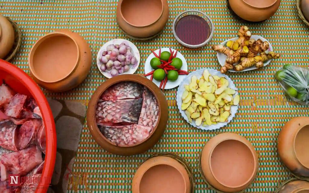 Les marmites de terre cuite utilisées pour la cuisson viennent des provinces de Nghê An et Thanh Hoa (Centre). Après l’avoir lavé, séché et rincé ce pot d’argile, on dispose au fond une couche de galanga tranché pour l’arôme et pour empêcher le poisson de brûler pendant la cuisson. On ajoute ensuite des épices comme du piment, de l’oignon séché, du nuoc mam, du poivre, etc.