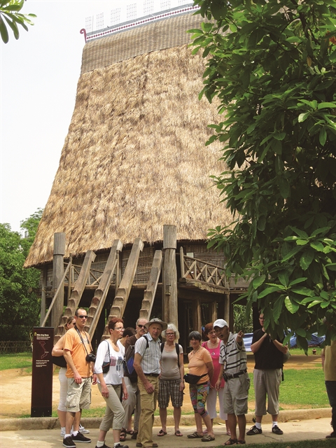 | Un groupe de touristes étrangers au Musée d’ethnographie du Vietnam, à Hanoi. |