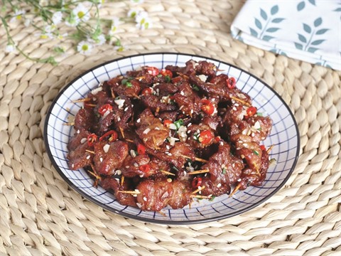 - Tremper la viande dans de l’eau salée, diluer pendant 5 minutes pour enlever la mauvaise odeur. Rincer dans l’eau et égoutter. Couper en tranche de 0,5 cm d’épaisseur.