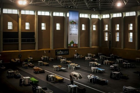| Un centre d'hébergement d'urgence spécial COVID-19 pour sans-abris, le 14 avril à Lisbonne, au Portugal. |