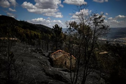 | Une maison brûlée par un incendie à Orjais, au Portugal, le 17 août. |