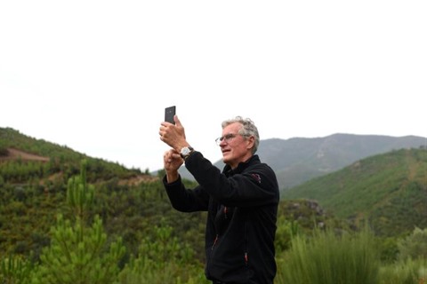 | David Archer, Pdg de la société minière britannique Savannah Resources, prend une photo de la mine de Barroso à Boticas dans le Nord du Portugal, le 3 septembre. |