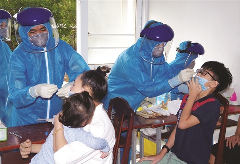 | Le personnel médical de la province de Bac Liêu (Sud) prélève des échantillons pour le test du COVID-19 sur des citoyens vietnamiens revenus de République de Corée, le 6 avril. |