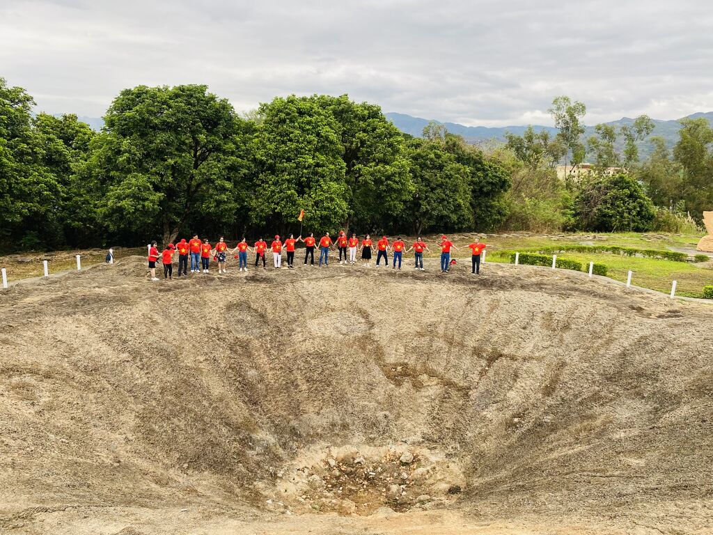 | Cratère de l'explosion d'une tonne de dynamite qui fit voler en éclat en 1954 les blockhaus français de la colline A1. |