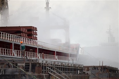 | Le navire au port de Chornomorsk (Ukraine), le 29 juillet. |