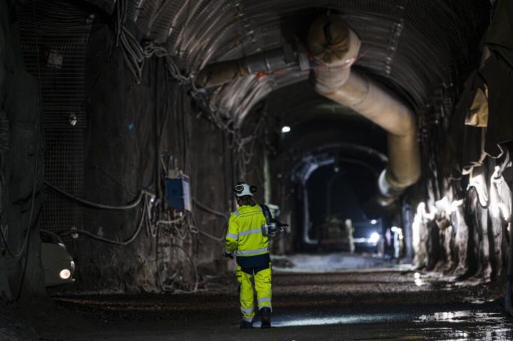| Un ouvrier marche dans le dépôt d'Onkalo, une installation souterraine de stockage de déchets nucléaires, le 2 mai, sur l'île d'Olkiluoto, en Finlande. |