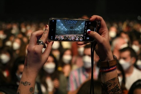 | 5.000 spectateurs masqués et testés assistent au concert du groupe de rock Love of Lesbian, le 27 mars à Barcelone. |