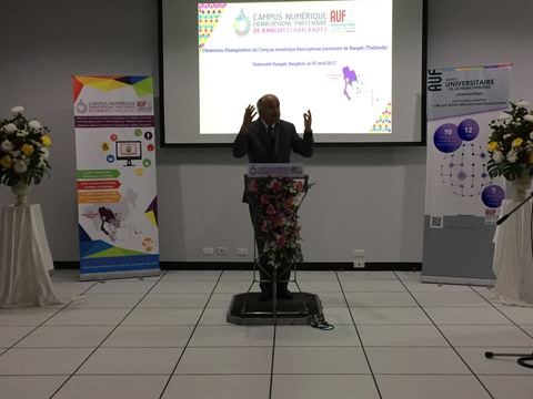 | Jean Paul de Gaudemar, recteur de l’AUF, prononce un discours à la cérémonie d’inauguration du CNFp de Rangsit, le 3 avril à Bangkok, en Thaïlande. |