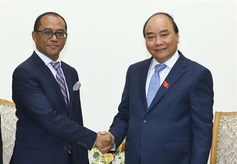 | Le Premier ministre Nguyên Xuân Phuc (droite) et le ministre des Affaires étrangères et de la Coopération du Timor-Leste, Dionisio Babo Soares. |