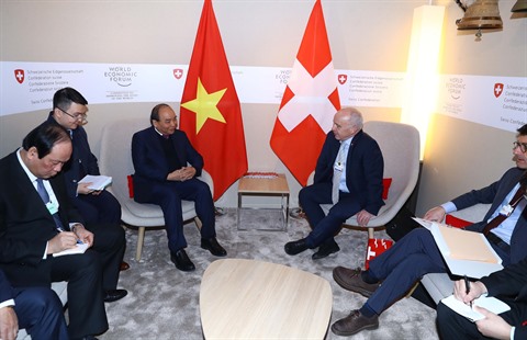 En marge du WEF 2019, le dirigeant vietnamien a rencontré le président suisse Ueli Maurer. Il lui a affirmé que le Vietnam attache toujours de l’importance à la consolidation et au renforcement de ses liens avec la Suisse. Il a saisi l’occasion pour remercier la Suisse d’avoir soutenu la candidature du Vietnam au poste de membre non permanent du Conseil de sécurité des Nations unies pour la période 2020-2021 et d’avoir promis une aide publique au développement de 90 millions de dollars pour le pays pour la période 2017-2020.