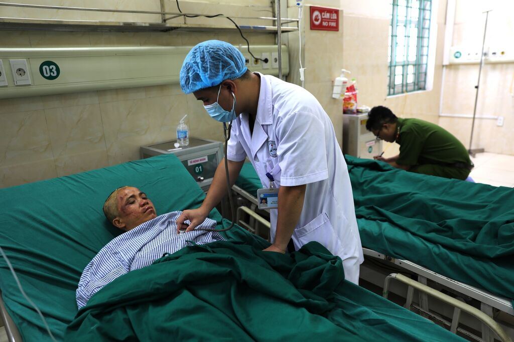 | Une victime du glissement de terrain à Hà Giang est soignée à la Polyclinique provinciale. |