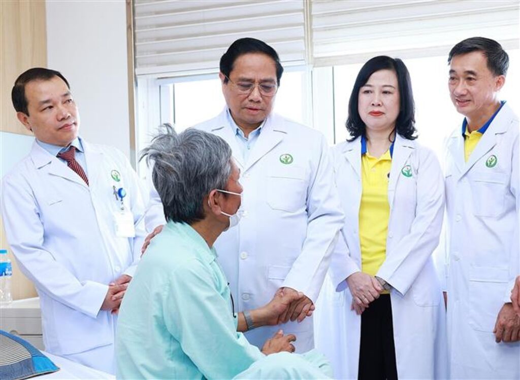| Le Premier ministre Pham Minh Chinh se rend visite à des patients bénéficiaires d'une transplantation d'organe. Photo : VNA/CVN |