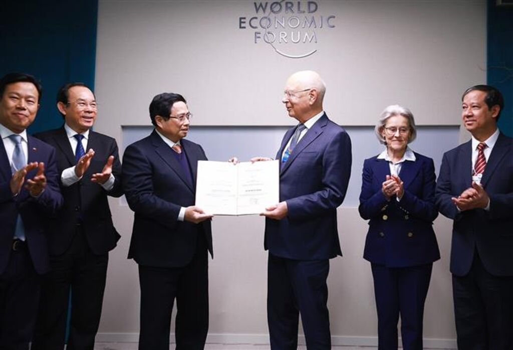 À cette occasion, le Premier ministre Pham Minh Chinh et la délégation vietnamienne ont assisté à la cérémonie de remise du doctorat honorifique de l'Université nationale de Hanoï au Professeur Klaus Schwab. Le dirigeant vietnamien a souligné que l'attribution de ce titre visait à reconnaître les précieuses contributions du fondateur du WEF sous deux aspects : une personne qui travaille dur et se consacre de tout son cœur ; une personne qui fait émerger de nouvelles idées et de nouvelles directions, façonne l'économie mondiale, apporte des bénéfices au monde, à tous les peuples du monde.