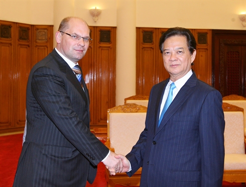 | Le Premier ministre Nguyên Tân Dung (droite) et le chef du Département de prévention et de lutte contre la corruption de Russie, Plokhoi Oleg Anatolievich, le 23 septembre à Hanoi |
