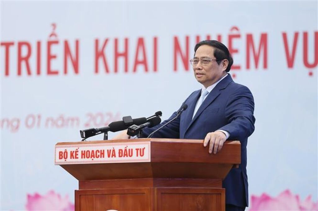 | Le Premier ministre Pham Minh Chinh lors d'une conférence visant à faire le bilan des activités de 2023 et définir les tâches de 2024 du ministère du Plan et de l'Investissement, le 11 janvier à Hanoï. |