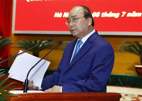 | Le Premier ministre Nguyên Xuân Phuc s’adresse à la conférence politico-militaire de l’armée, le 8 juillet à Hanoï. |
