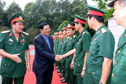 | Le Premier ministre cambodgien Samdech Akka Moha Sena Padei Techo Hun Sen (2e à gauche) au commandement de la 7e Région militaire, le 21 décembre à Hô Chi Minh-Ville. |