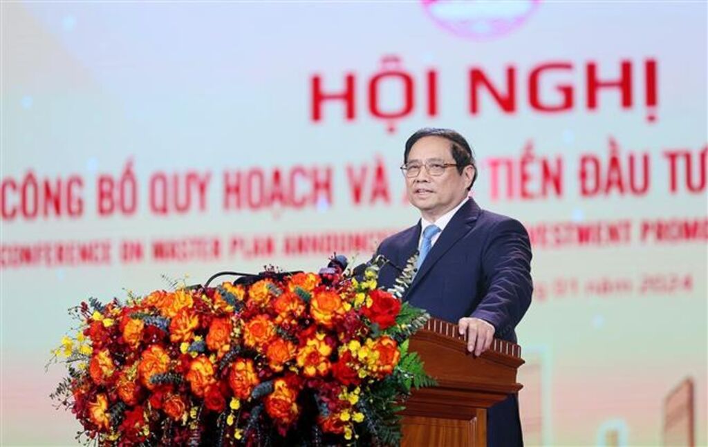 | Le Premier ministre Pham Minh Chinh s'adresse à la conférence sur l’annonce du plan directeur et la promotion des investissements de la province de Hai Duong. |