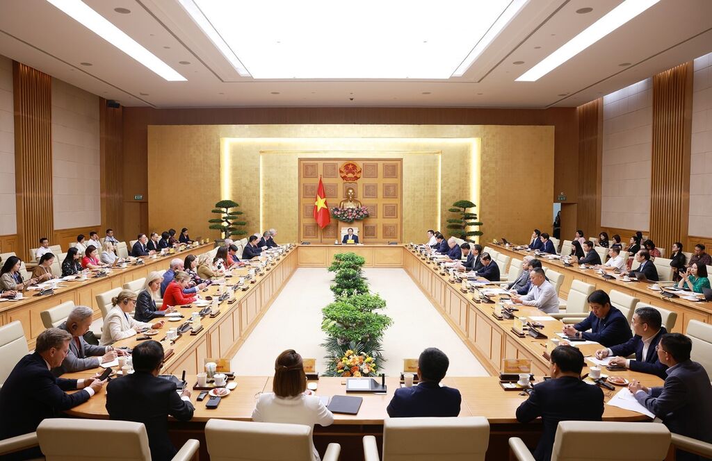 Informant les invités de la situation actuelle du Vietnam, le Premier ministre Pham Minh Chinh a souligné que le pays poursuivait ses réformes et poursuivrait ses efforts de changement, créant ainsi les conditions les plus favorables pour les citoyens et les entreprises, les plaçant au cœur des politiques, passant d'une approche passive à une approche active et de la gestion à la prestation de services.