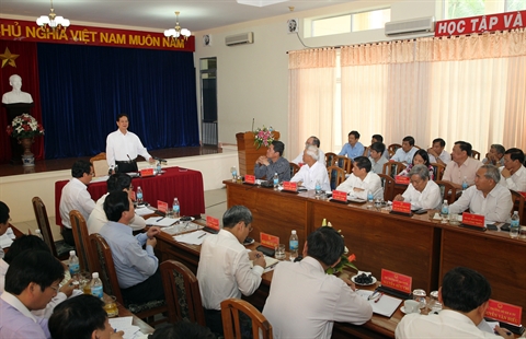 | Le Premier ministre Nguyên Tân Dung (debout) lors d'une séance de travail tenue 14 avril avec les autorités de la province de Khanh Hoà (Centre). |