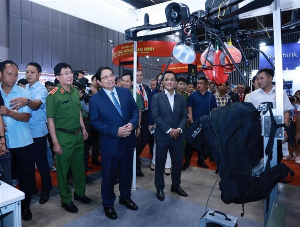 | Le Premier ministre Pham Minh Chinh (centre) lors du salon professionnel de la sécurité Secutech+ Vietnam, à Hô Chi Minh-Ville, le 14 août. |