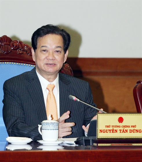 | Le Premier minister Nguyên Tân Dung lors de la séance de travail avec la Confédération du Travail du Vietnam le 22 février à Hanoi. |
