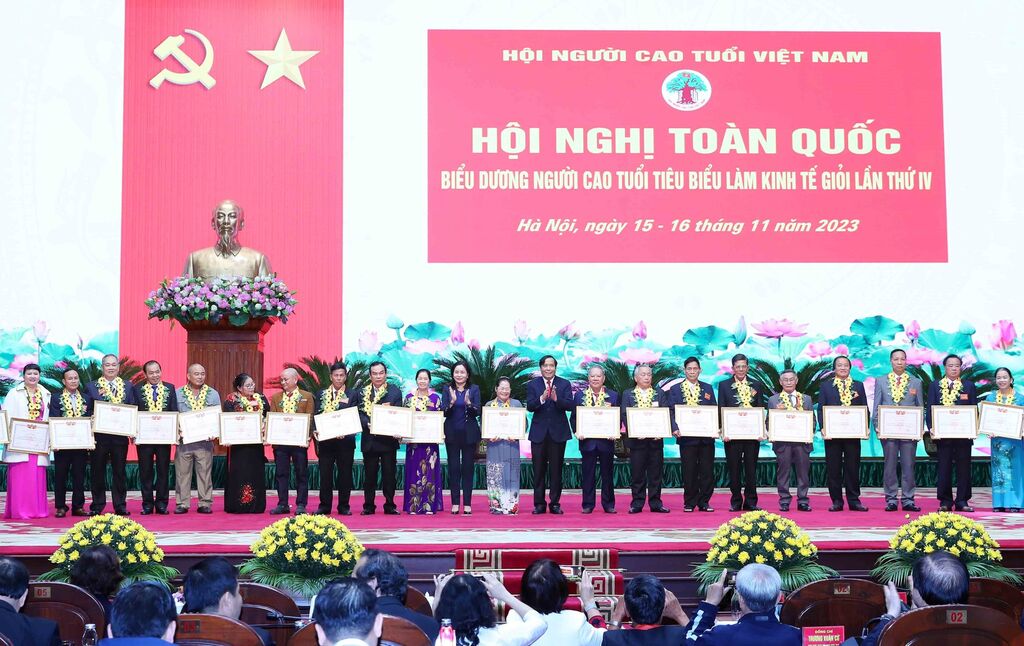 Au nom des dirigeants du Parti et de l’État, le Premier ministre Pham Minh Chinh, avec des responsables de l’Association des personnes âgées du Vietnam, des ministères, a décerné l’Insigne de mérite à 273 entrepreneurs seniors excellents en 2023.