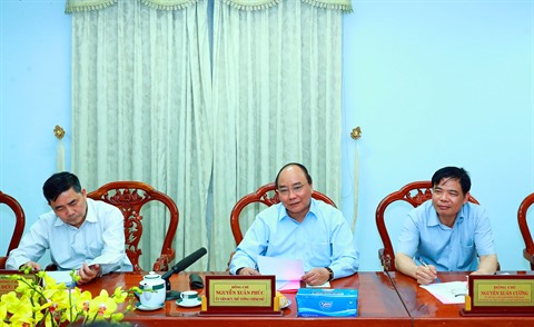 | Le Premier ministre Nguyên Xuân Phuc (au centre) travaille le 14 mars avec les autorités provinciales d’An Giang (Sud). |