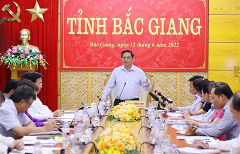 | Le Premier ministre Pham Minh Chinh (debout) travaille avec les dirigeants de la province de Bac Giang (Nord), le 12 juin. |