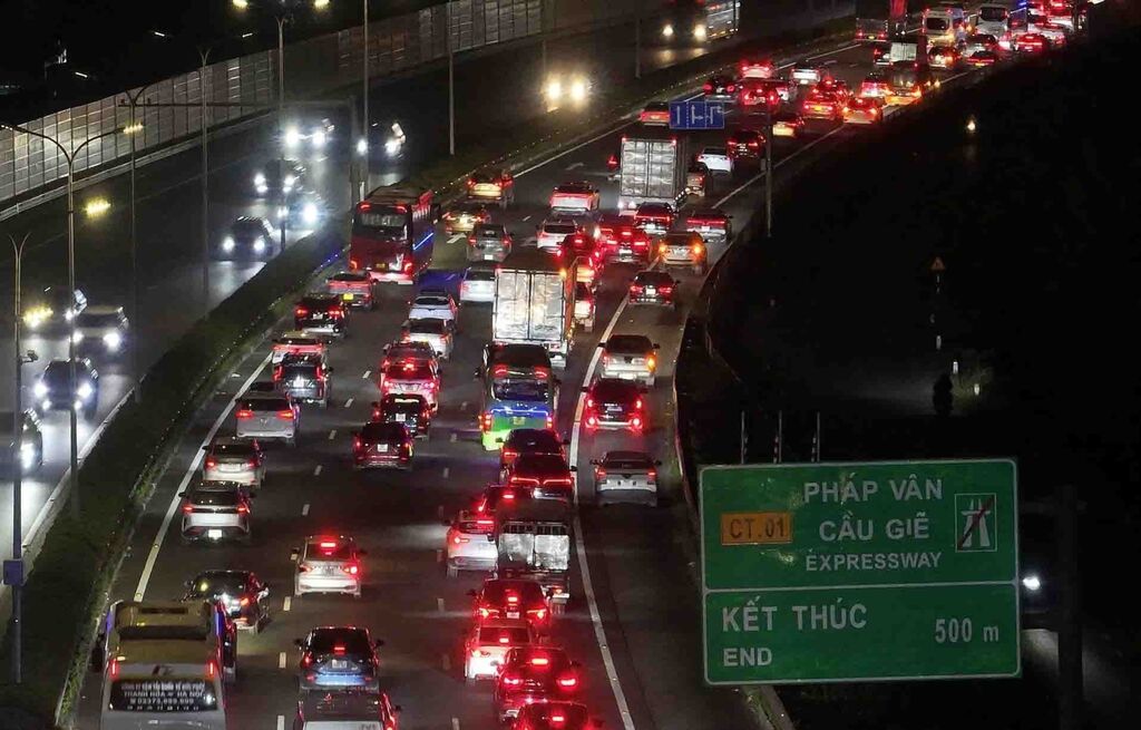 | À 23h00 le 21 février, sur l'autoroute Phap Vân - Câu Gie, le trafic s'est intensifié. |