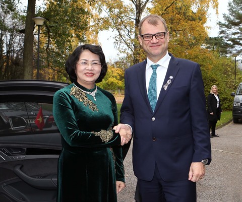 | La vice-présidente vietnamienne Dang Thi Ngoc Thinh et le Premier ministre finlandais Juha Sipila, le 17 octobre à Helsinki. |
