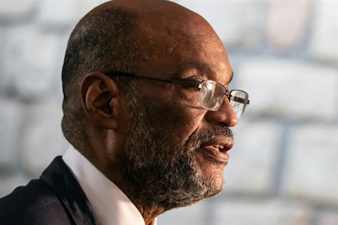 | Le Premier ministre haïtien Ariel Henry lors de l'investiture de son gouvernement, à Port-au-Prince, le 24 novembre 2021. |