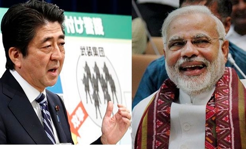 | Le Premier ministre indien Narendra Modi (droite) et son homologue japonais Shinzo Abe. |