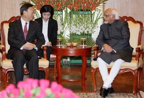 | Le vice-président indien Hamid Ansari (doite) et le ministre chinois des Affaires étrangères, Yang Jiechi, le 1er mars à New Delhi. Photo. XINHUA/VNA/CVN |
