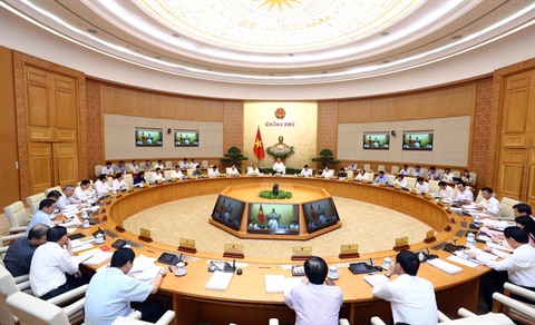 | Le Premier ministre Nguyên Xuân Phuc (centre) lors de la réunion gouvernementale du mois d’août, le 30 août à Hanoï. |