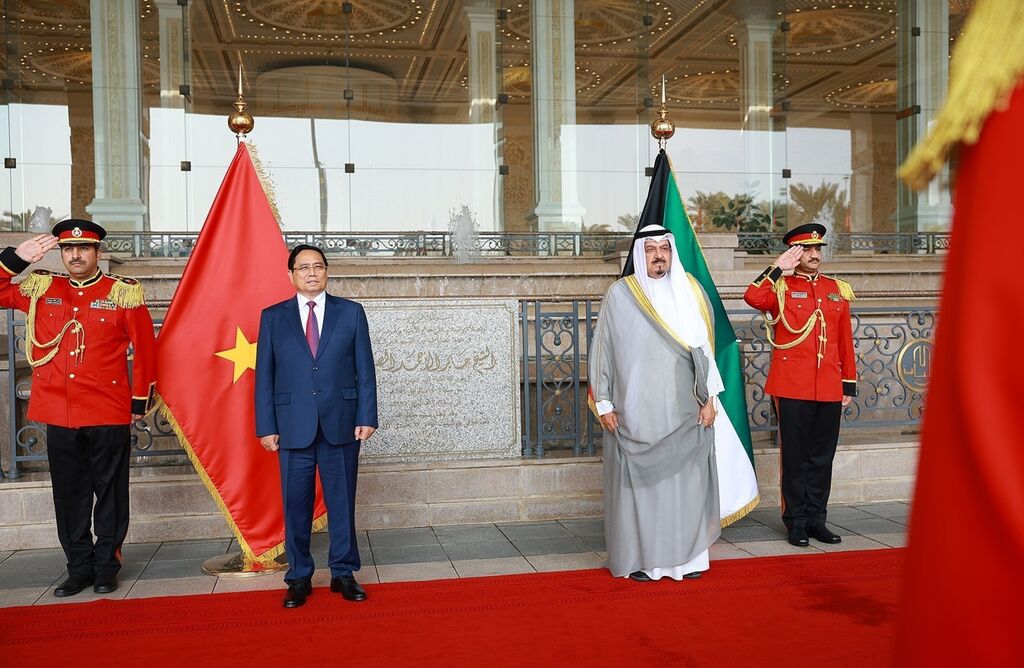 | Cérémonie d'accueil du Premier ministre vietnamien Pham Minh Chinh (gauche), en visite officielle au Koweït, le 17 novembre. |