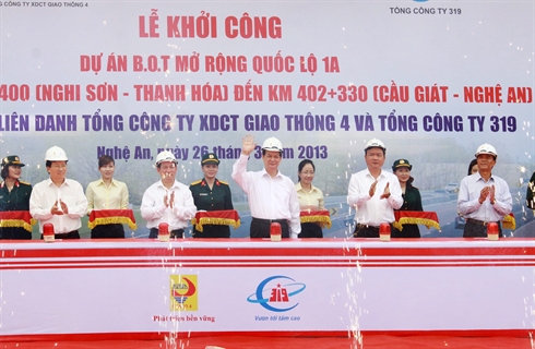 | Cérémonie de mise en chantier du projet de l’élargissement de la nationale 1A, le 26 mars à Nghê An (Centre). |