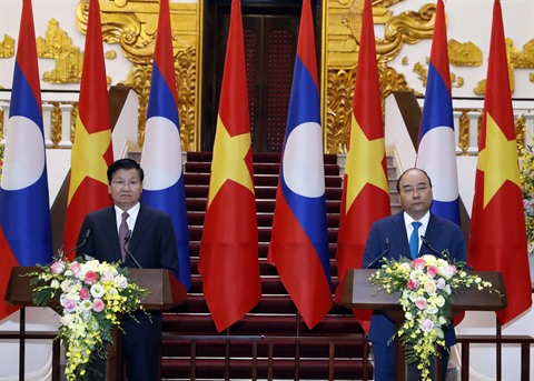 | Le Premier ministre vietnamien Nguyên Xuân Phuc (droite) et son homologue laotien Thongloun Sisoulith, le 1er octobre à Hanoï. |