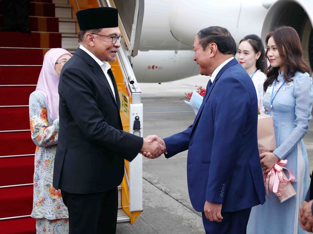 Le Premier ministre malaisien Anwar Ibrahim a été accueilli à l'aéroport par le ministre de la Culture, des Sports et du Tourisme, Nguyên Van Hùng, le vice-ministre des Affaires étrangères, Dô Hùng Viêt, l'ambassade du Vietnam en Malaisie, Dinh Ngoc Linh, le directeur du Département du protocole d'État du Vietnam, Nguyên Viêt Dung, etc.