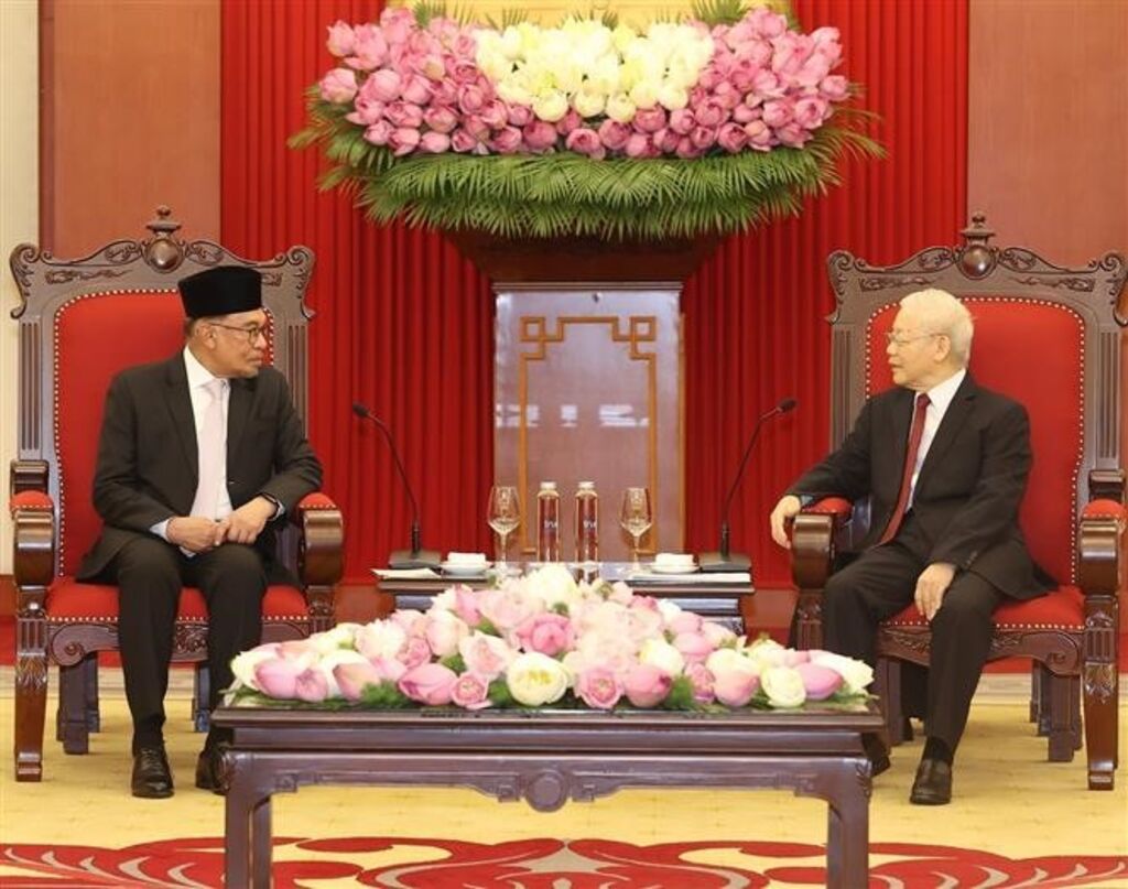 Au cours des entretiens et des rencontres, les dirigeants vietnamiens ont salué la visite officielle du PM malaisien Anwar Ibrahim et sa suite au Vietnam à l'occasion du 50e anniversaire des relations diplomatiques bilatérales cette année, et ont estimé que la Malaisie poursuivrait avec succès la stratégie "Malaysia Mandani" initiée par le PM malaisien Anwar Ibrahim et deviendrait un pays à revenu élevé avec un développement durable.